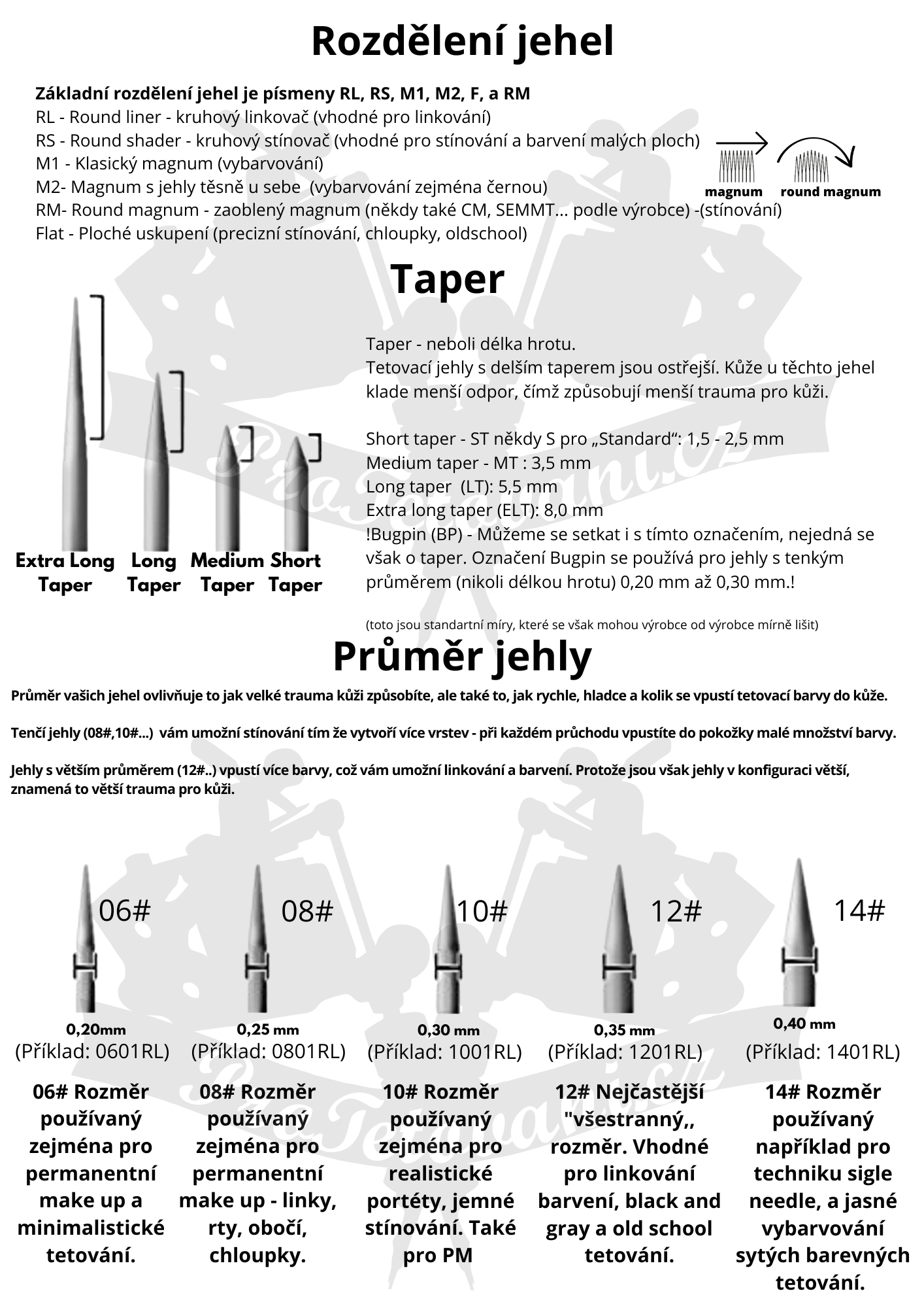 Tetovacie ihly 50 ks mix veľkostíObsah balenia:Linkovacie ihly:3RL 5ks, 5RL 5ks, 7RL 5ks, 9RL 3ks,Ti..